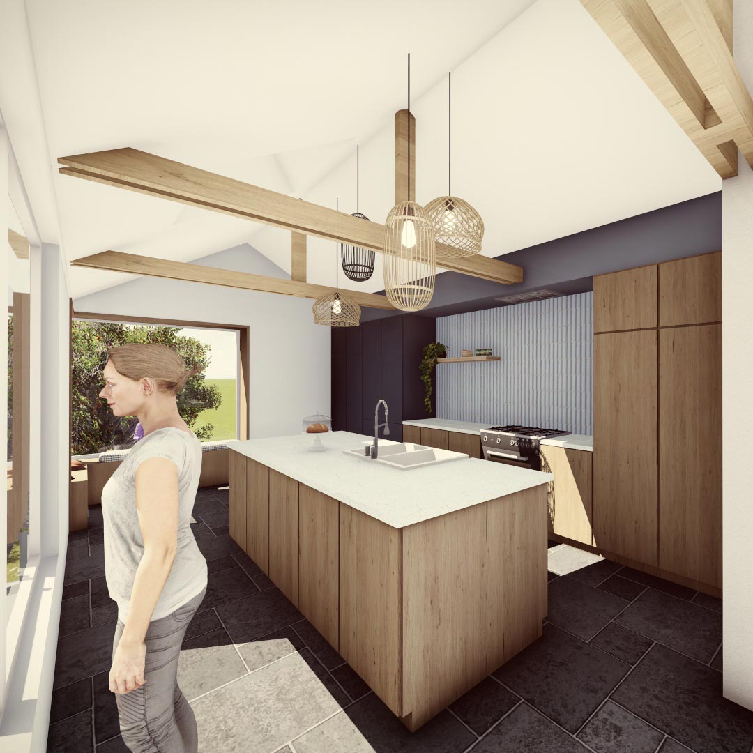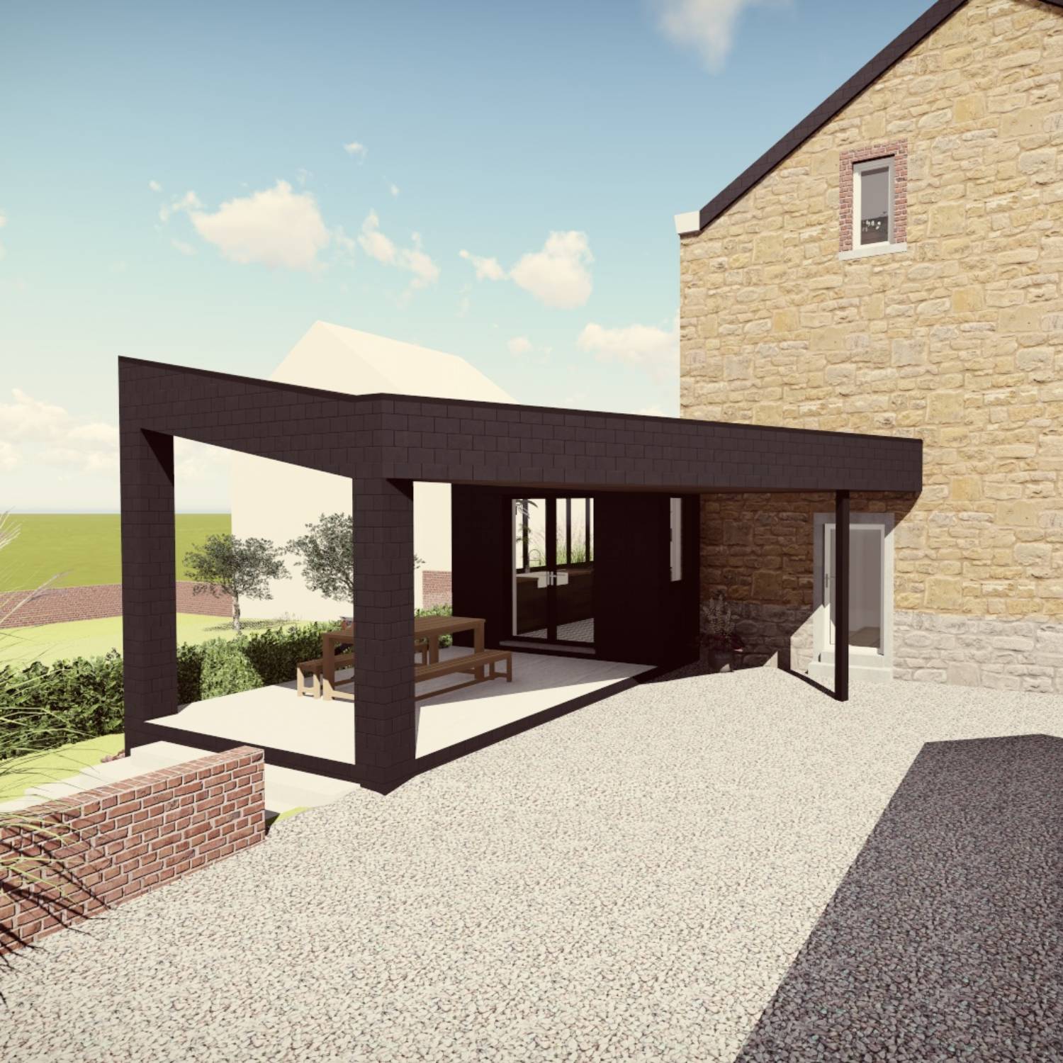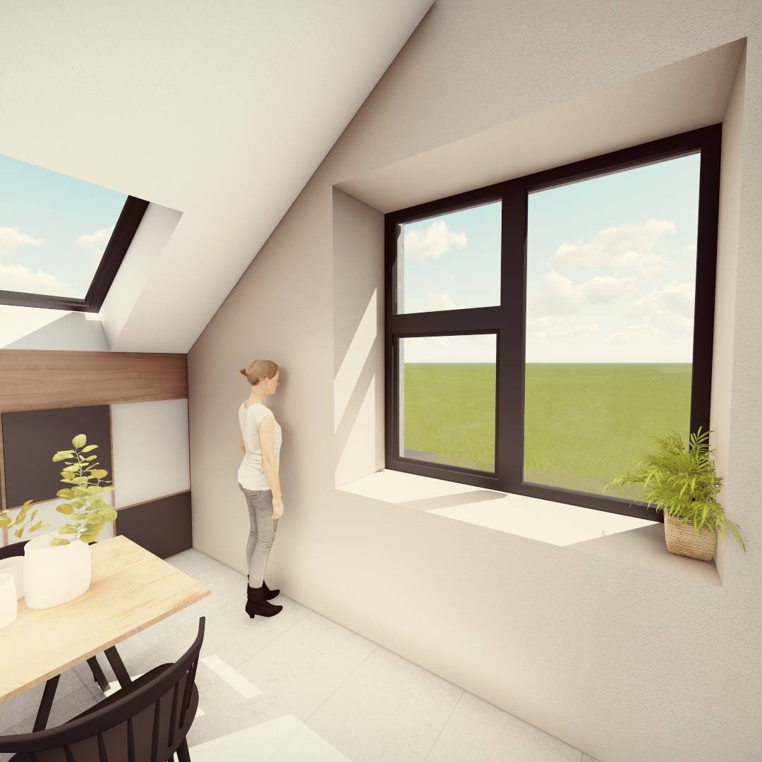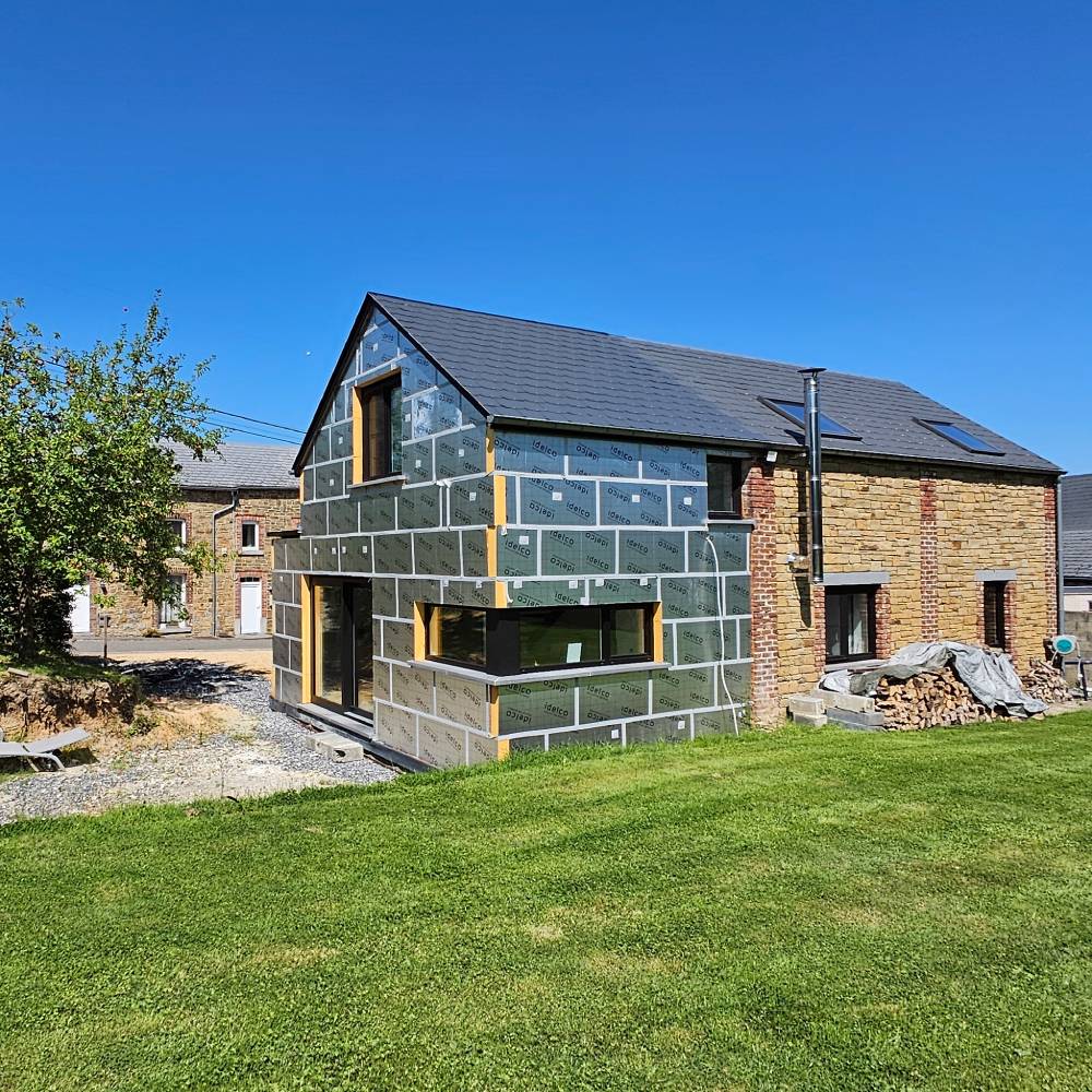 Transformation complète d’une habitation de campagne, recherche du potentiel selon l’orientation, la forme peu commune du trapèze (en plan ET en façade), les contraintes constructives existantes, l’environnement, les contraintes de budget, les besoins intérieurs, la lumière, les possibilités d’évolution.